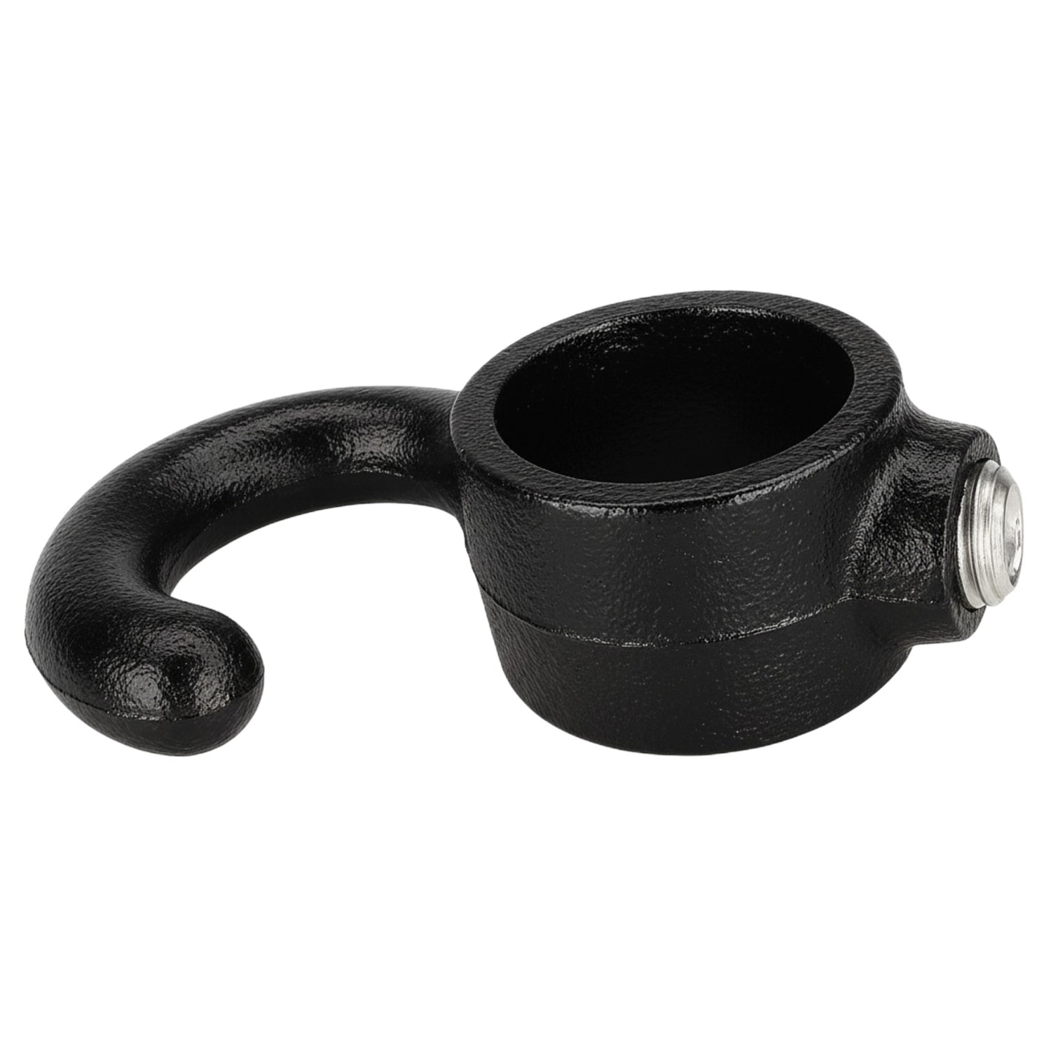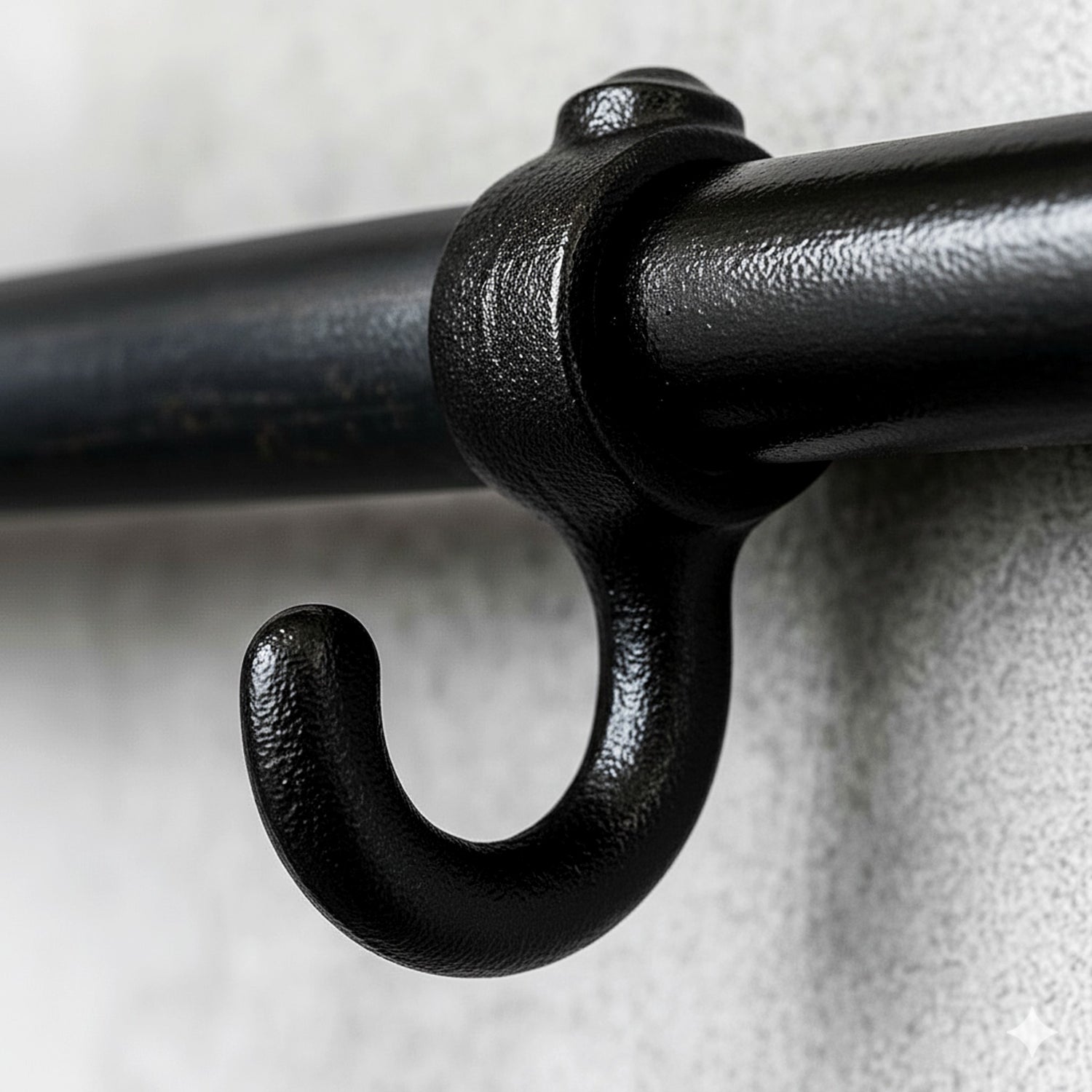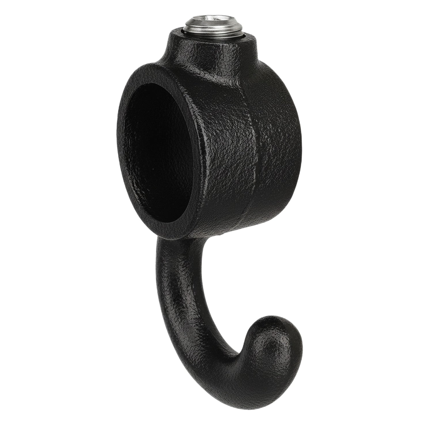 This black wall hook from the “Deco” range combines strength and industrial style. Made of cast iron with a black painted finish, it allows you to hang or suspend decorative elements on tubular structures while maintaining a solid and elegant look. Tightening is done with an Allen screw, ensuring a secure and discreet hold.