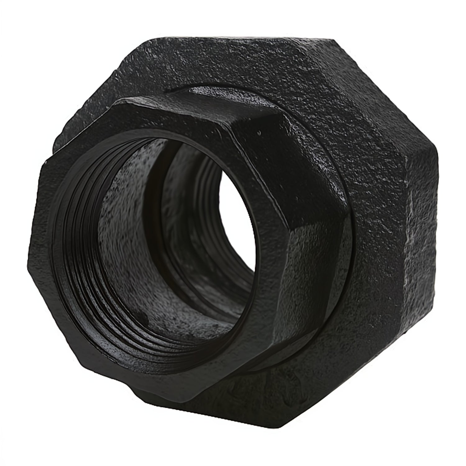 This female/female union fitting with black painted finish combines functionality and industrial design. Made of malleable cast iron, it allows you to connect two threaded elements without rotation, thanks to its removable central nut. Its black finish gives a sleek and modern decorative look, perfect for tubular structures, furniture projects or industrial-style interiors.